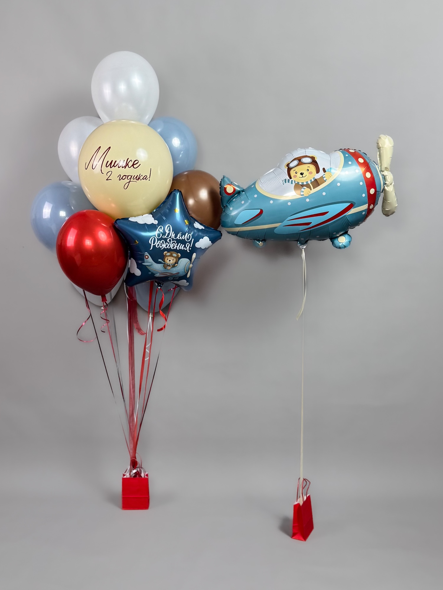 - Шар Самолет и Мишка пилот/авиатор - 1 шт