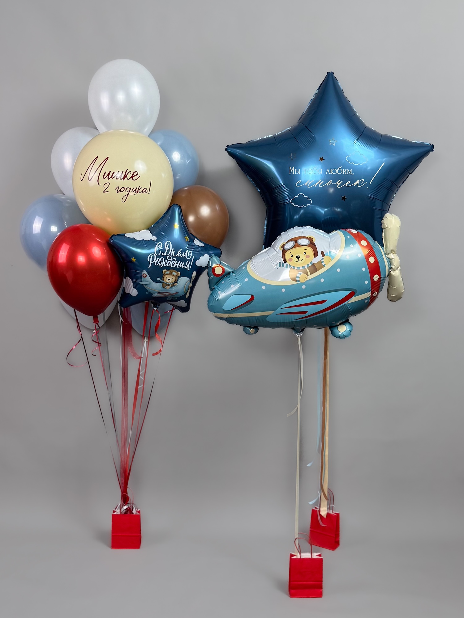 - Шар Самолет и Мишка пилот/авиатор - 1 шт