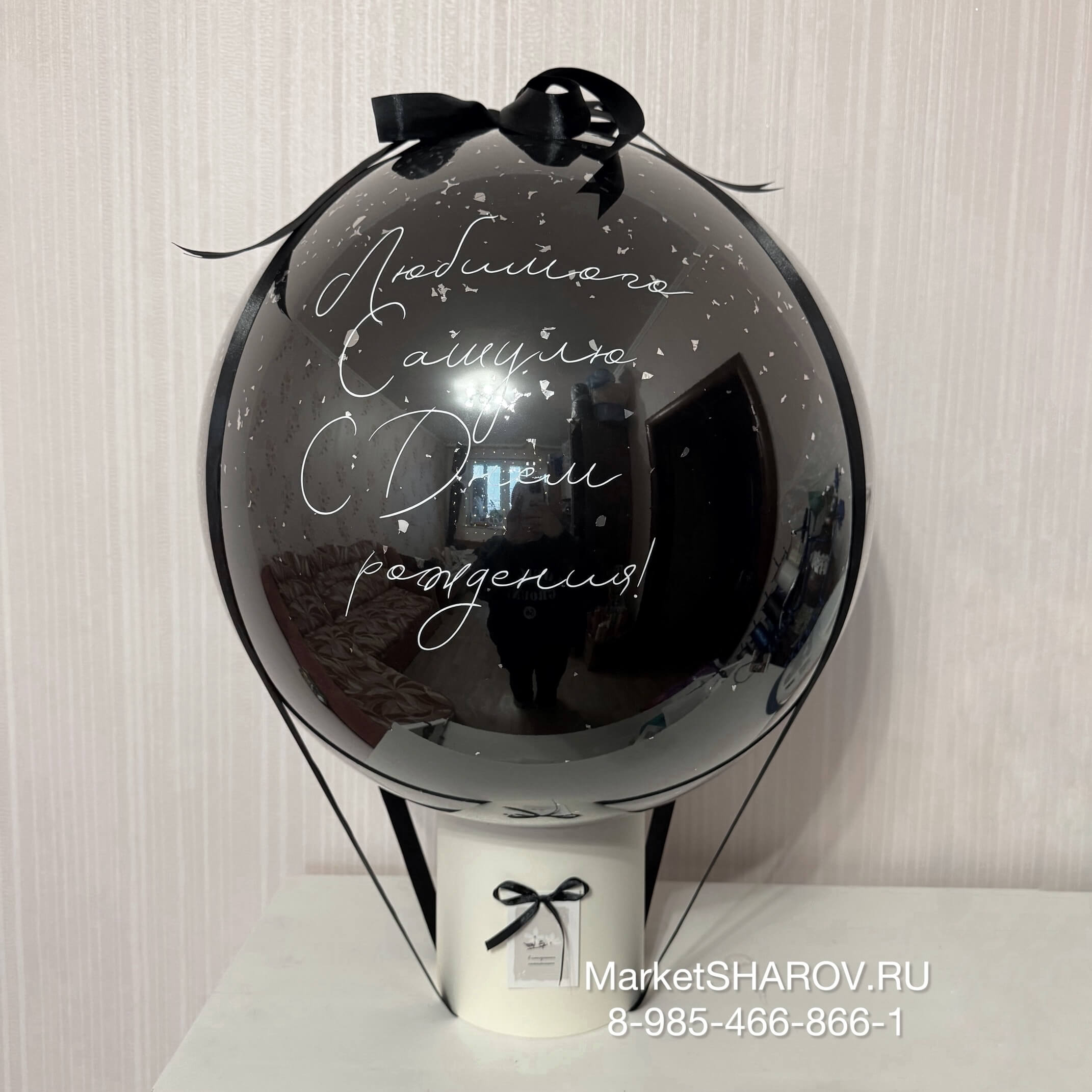 Композиция в коробке с воздушным шаром и лентой для денег.