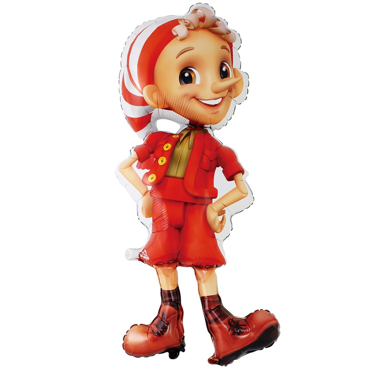 Фольгированный фигурный шар Буратино надут гелием, на ленте.