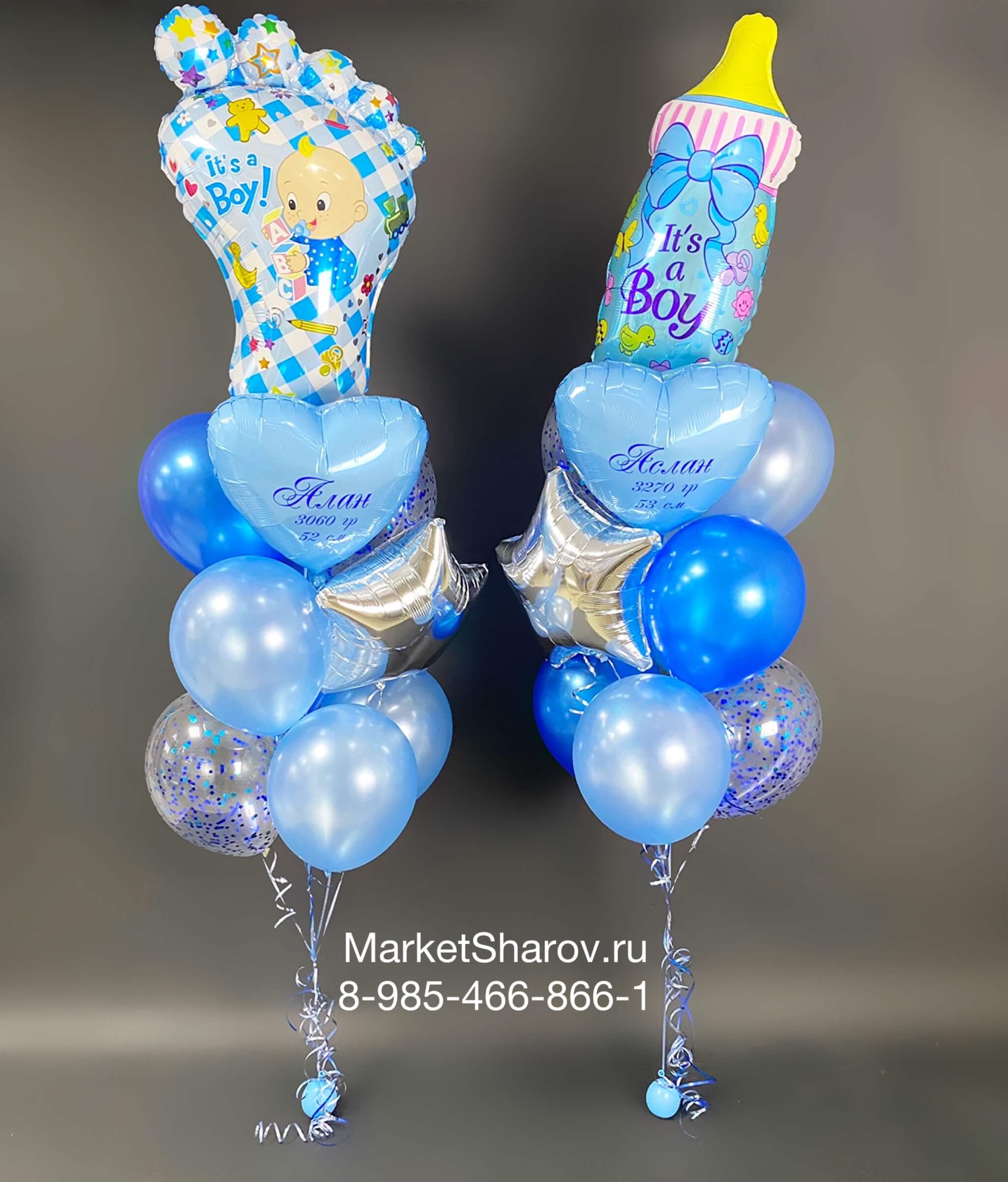 Набор воздушных шаров на выписку близнецов, двойняшек. Возможно исполнение в розовом цвете для девочек.