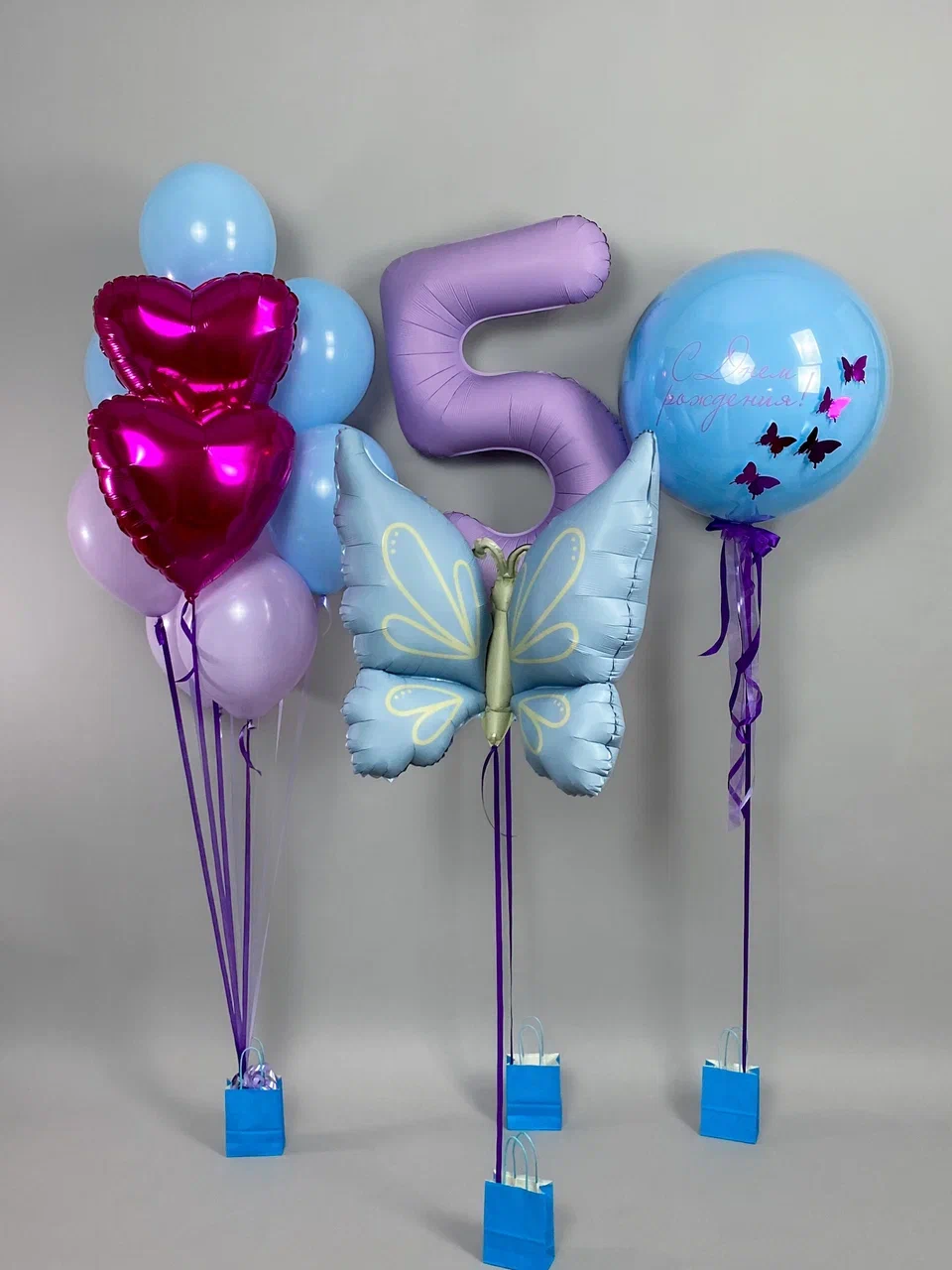 - Шар большой глянец с бабочками и надписью - 1 шт