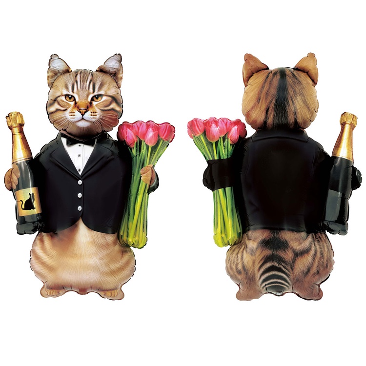 Фольгированный шар Кот с тюльпанами и шампанским - отличное дополнение к подарку на 8 марта.
