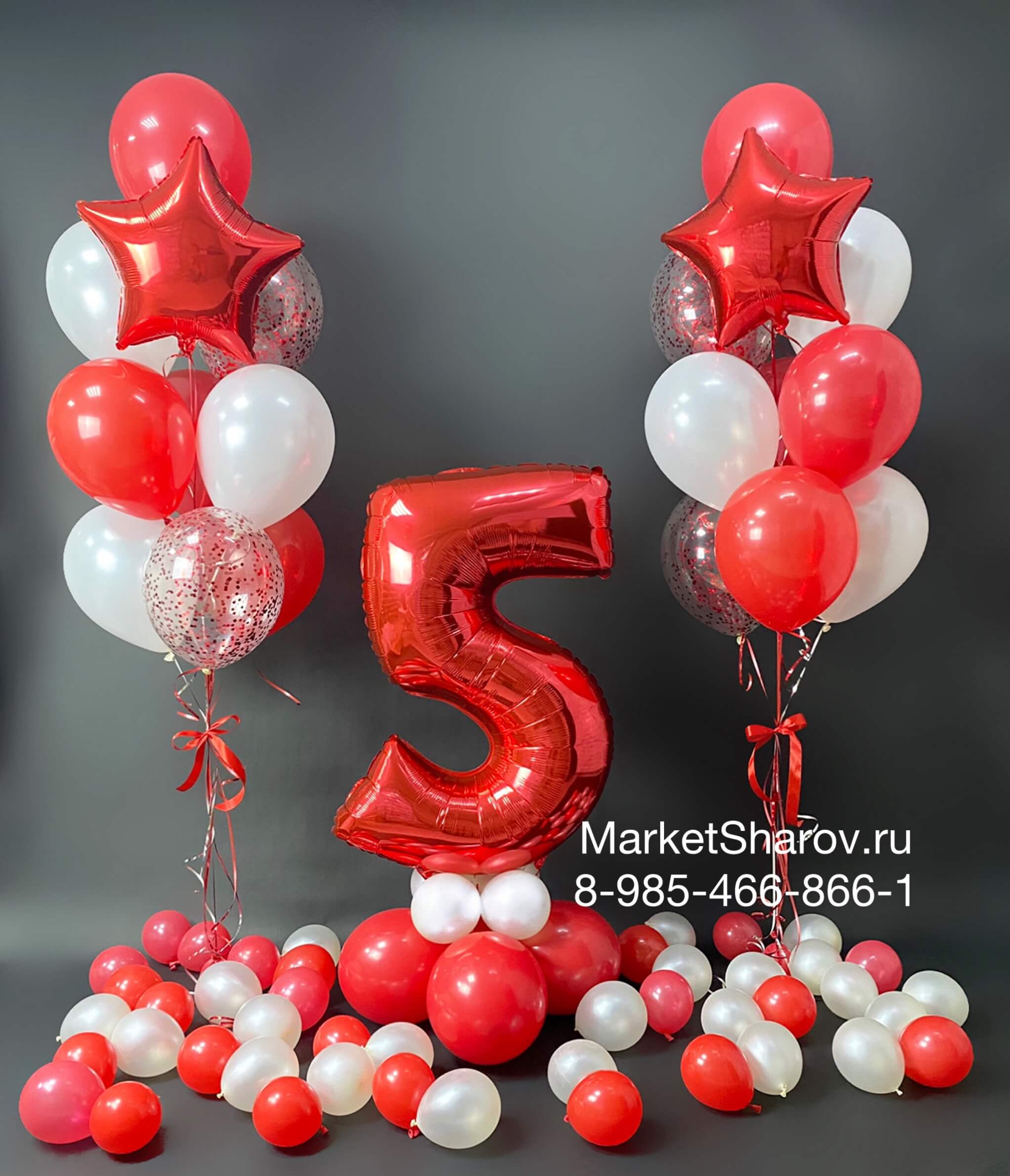 Набор воздушных шаров на день рождения в красном и белом цветах.