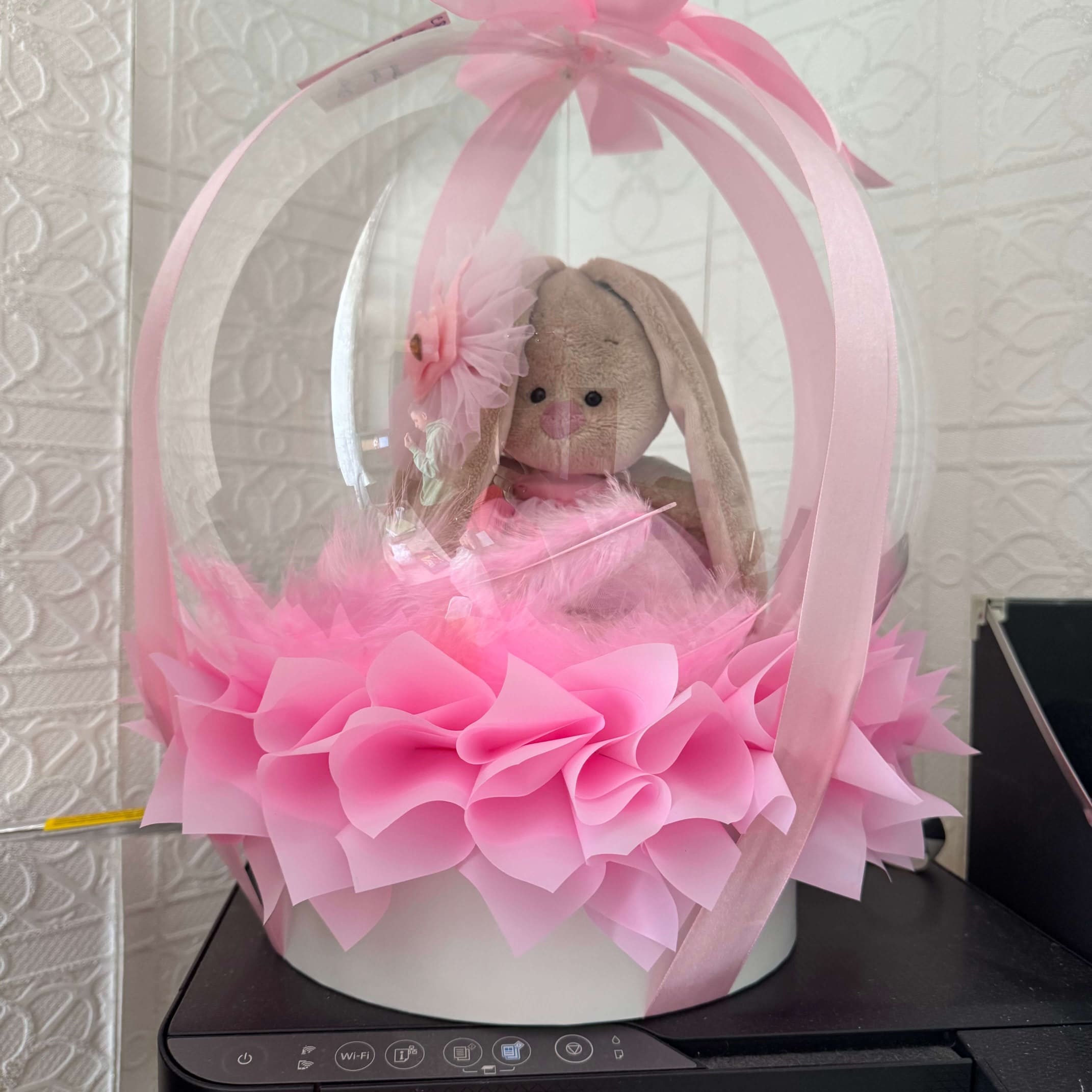 Зайка может быть другим, перед оформлением заказа обязательно согласуем с вами игрушку.