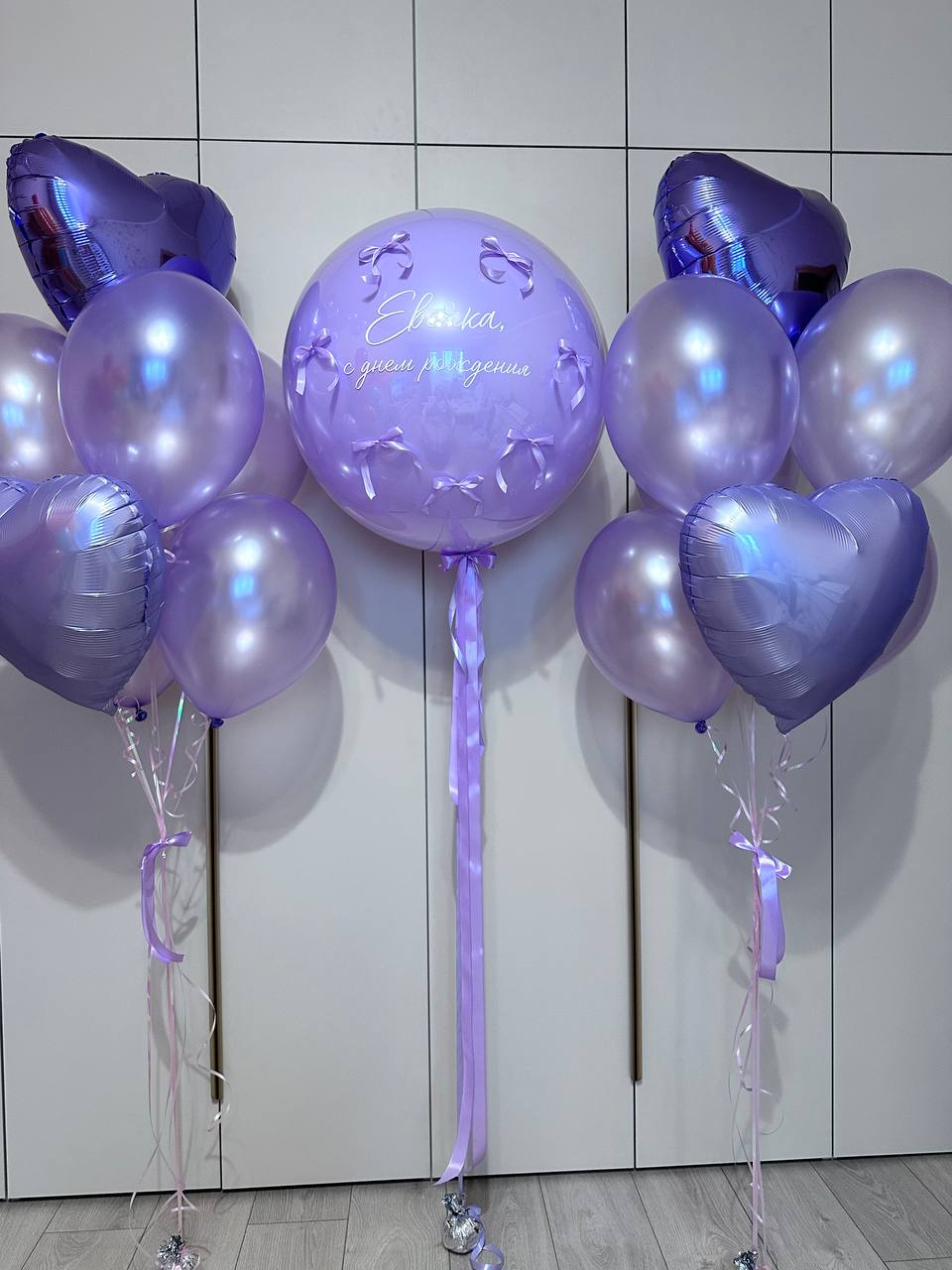 Набор воздушных шаров с бантиками сиреневого (лавандового) цвета. .
