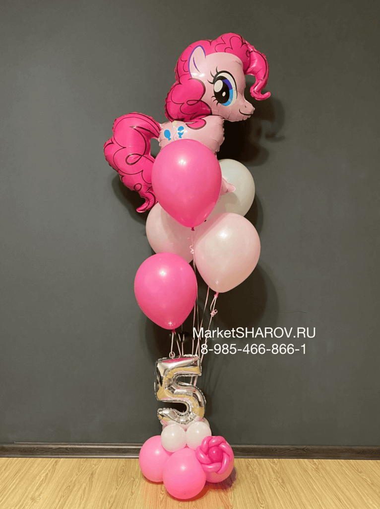 Набор воздушных шаров в розовых оттенках с фольгироваанным шаром Пони Пинки Пай (Милая Пони) для девочки.