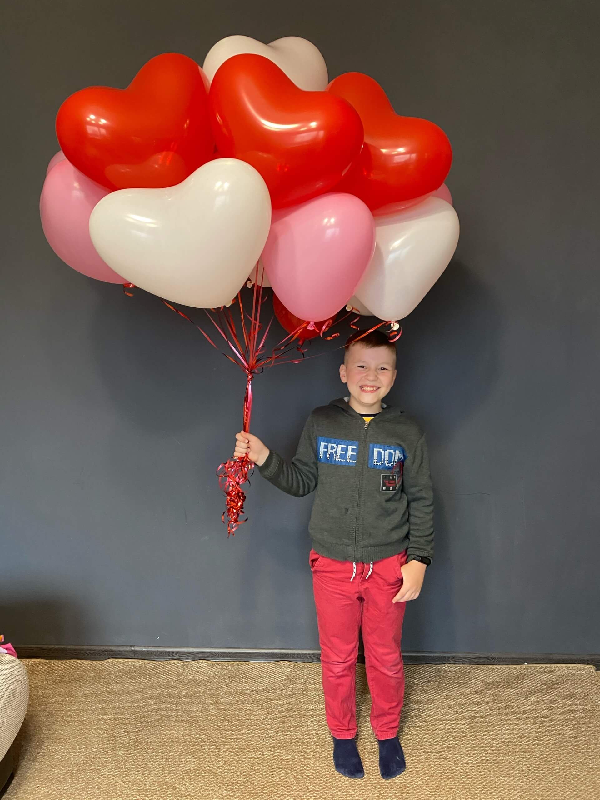 Набор шаров сердец ассорти (красный, розовый, белый).