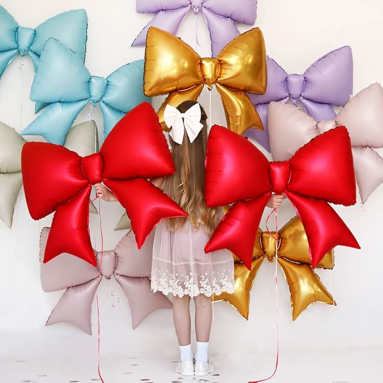 Воздушный шар Бант матового скрасного цвета может использоваться как самостоятельный шар, в комплекте с набором шаров, а также в качестве элемента оформления.