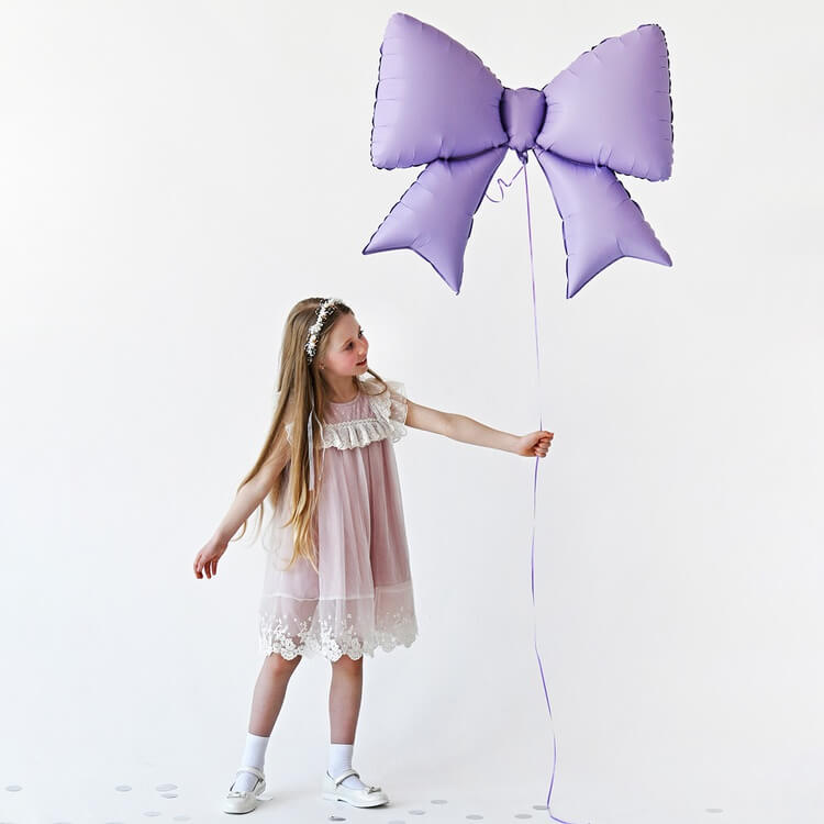 Воздушный шар Бант матового сиреневого/лавандового цвета может использоваться как самостоятельный шар, в комплекте с набором шаров, а также в качестве элемента оформления.