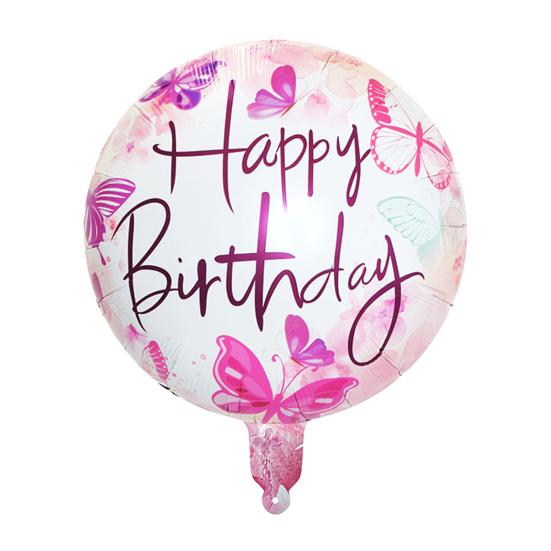 Воздушный шар круг из фольги с надписью и бабочками.