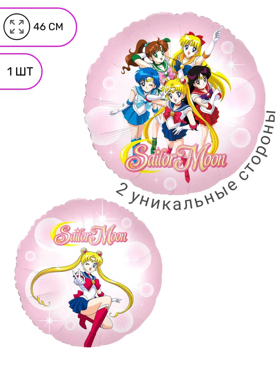 Фольгированный шар круг Сейлор Мун (аниме). Фольгированный воздушный шар изготовлен из тонкой миларовой пленки, позволяющей шару не сдуваться в течение нескольких дней.