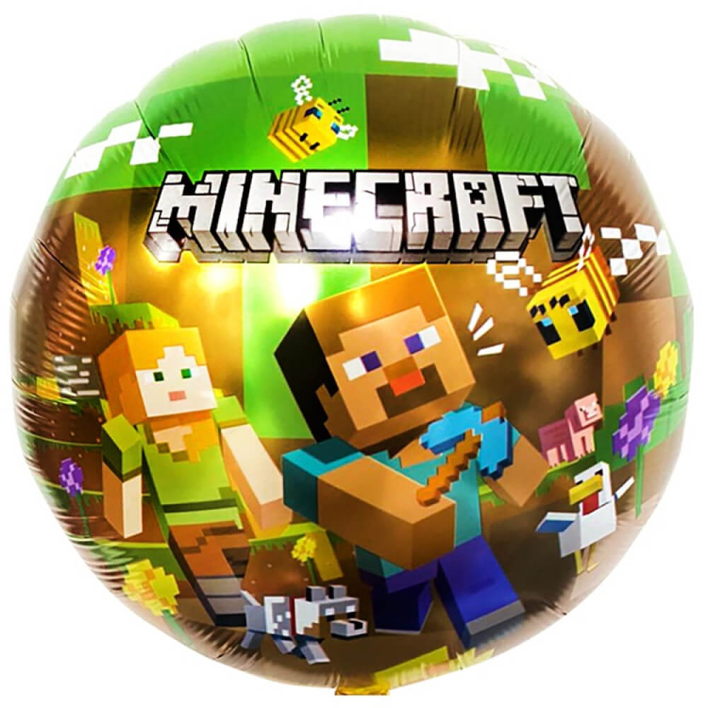 Фольгированный шар круг Майнкрафт с днем рождения.