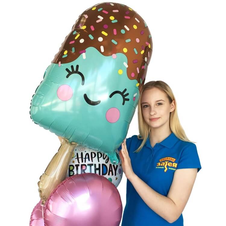Фольгированный шар фигура Мороженое эскимо - отличный вариант подарка без повода, на День рождения, а также может быть использован в качестве элемента оформления.