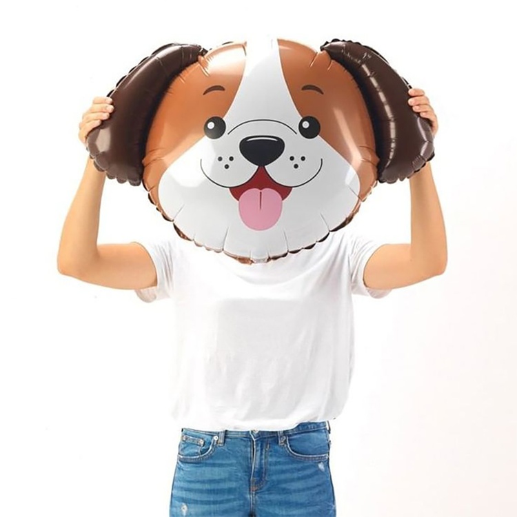 Воздушный фольгированный шар Собака (щенок) на ленте и наполнен гелием.